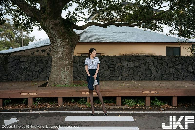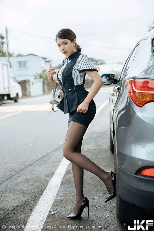 女神黄乐然济州岛旅拍黑短裙半脱秀无内黑丝裤袜撩人诱惑写真