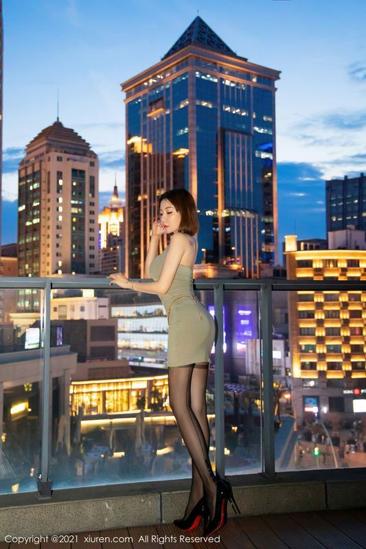 短发御姐果儿Victoria一袭简约吊裙与夜景